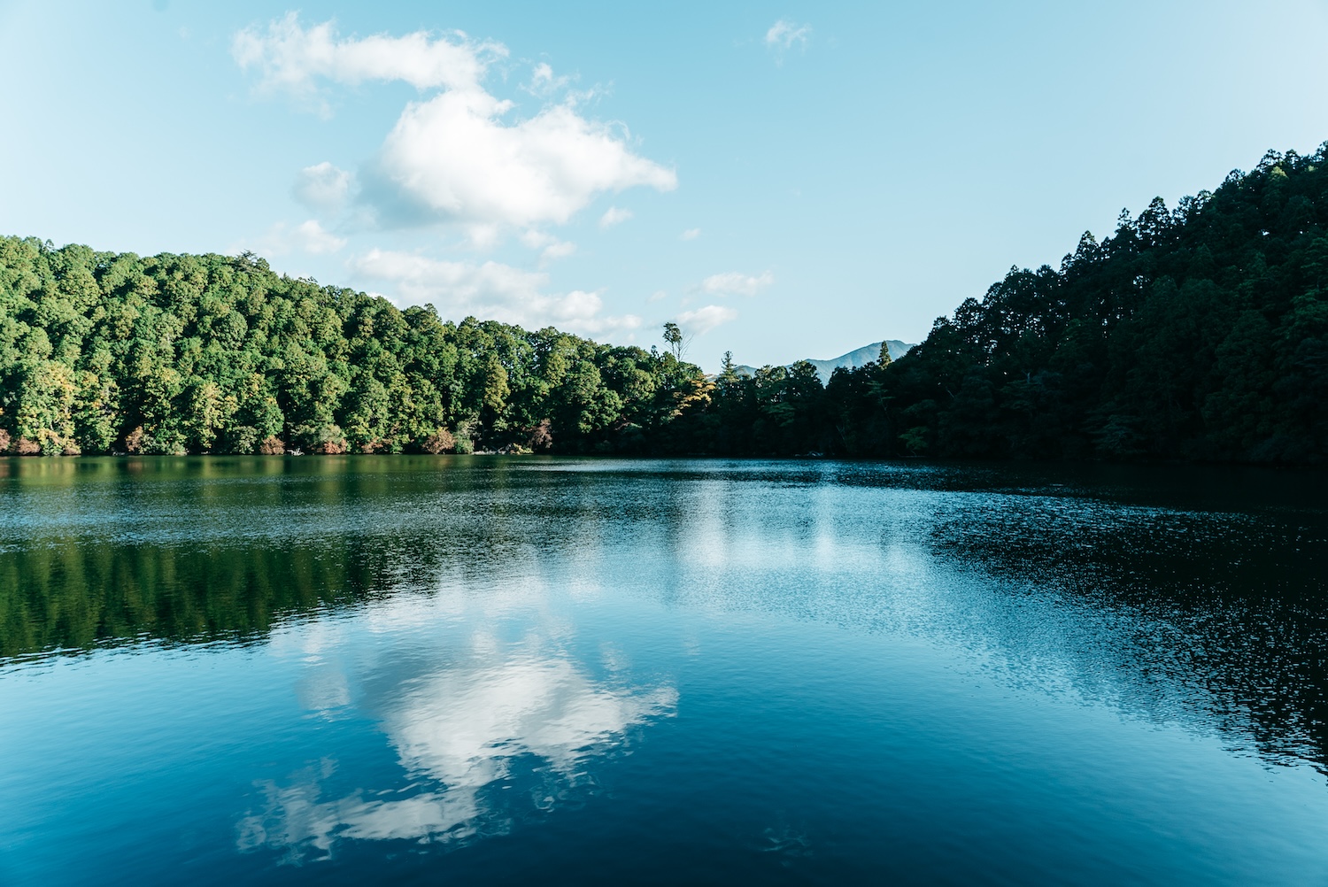 「入るに谷無く、出るに沢無し」と言われるこの池は、川も谷もないのに年中ほとんど水位が変わらず、静かな水面は周囲の山や空を映しています。
