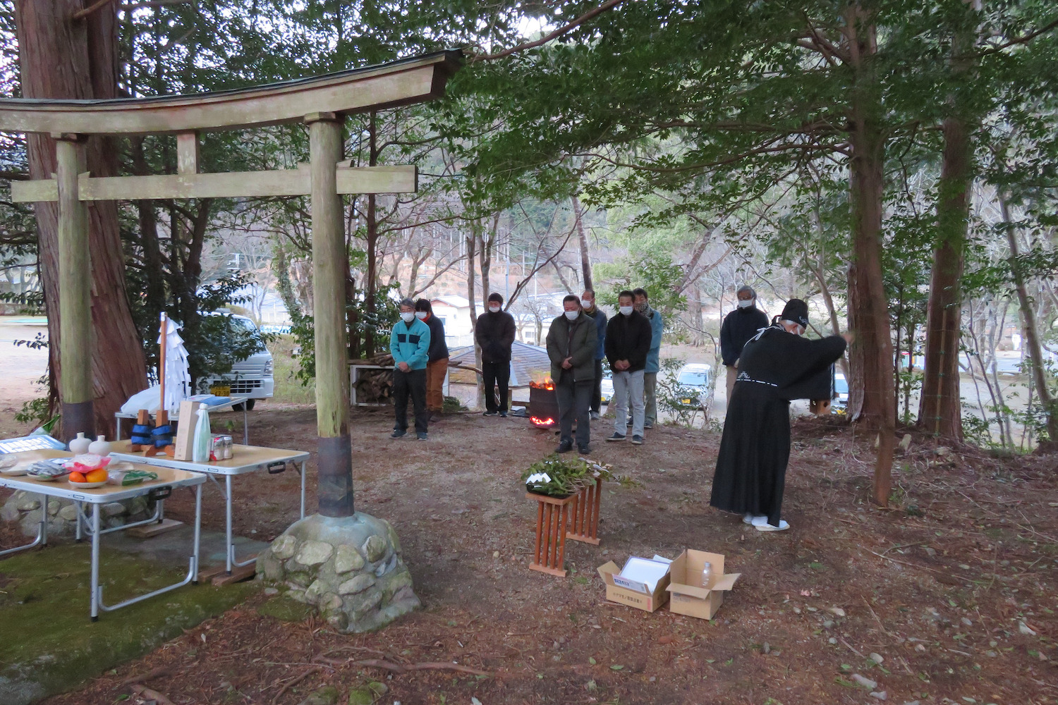 池峰では従来、林業全般の繁栄と従事者の安全などを祈願して、地元の林業の関係者だけで行ってきた「山の神=大山祇大神(おおやまつみのおおかみ)」の神事の対象を区民にも広げ、また地域も池峰に限らず、協力隊員や森林組合職員の方々、賛同者にもお参りいただいています。簡素なお祭りですが、大切に続けていきたいと願っています。